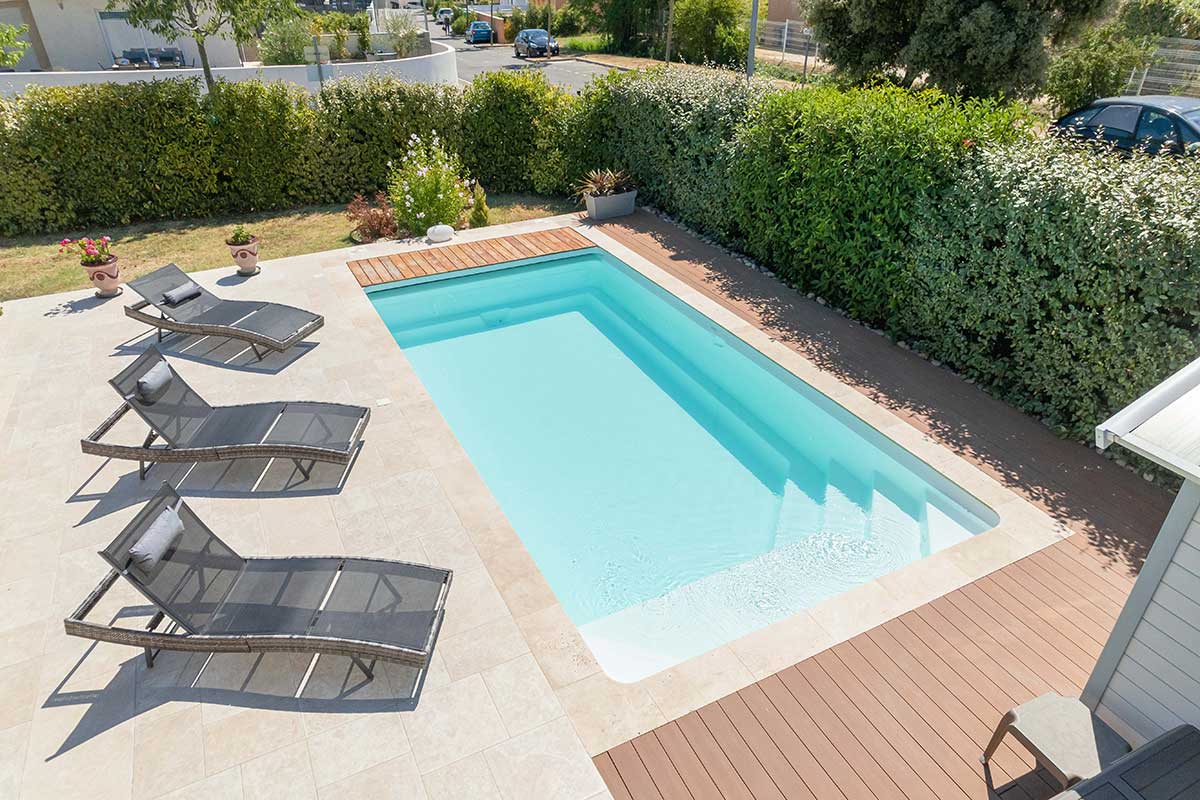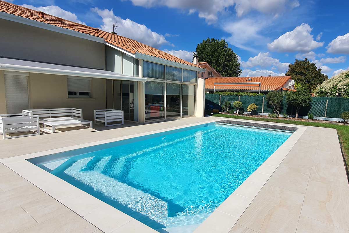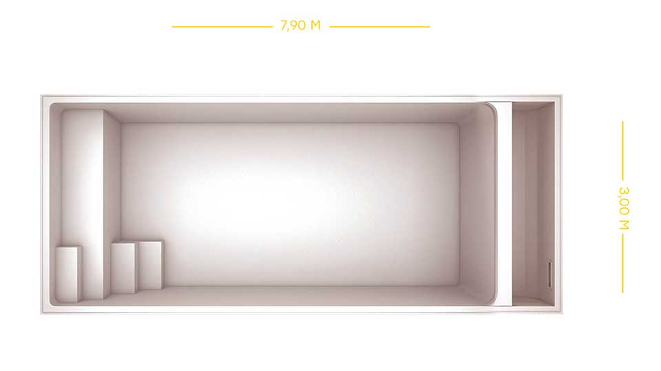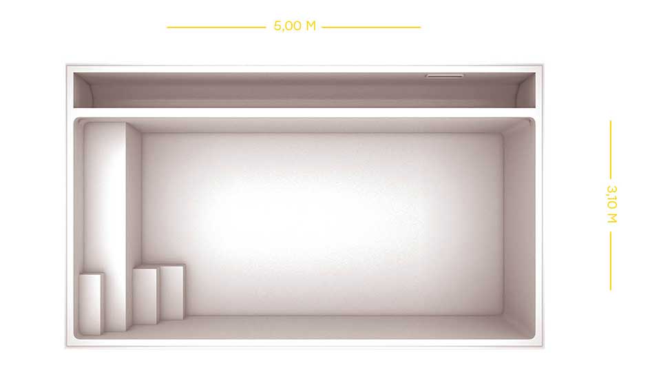 Comme nos piscines de la gamme YELO, vous choisissez la taille et la forme de votre future piscine coque, et vous adaptez la couleur de l'eau que vous souhaitez parmi nos 5 coloris de coque disponibles. Pour harmoniser votre espace de baignade avec votre maison et votre décoration, le volet automatique est disponible en blanc, gris clair, gris foncé ou ivoire.